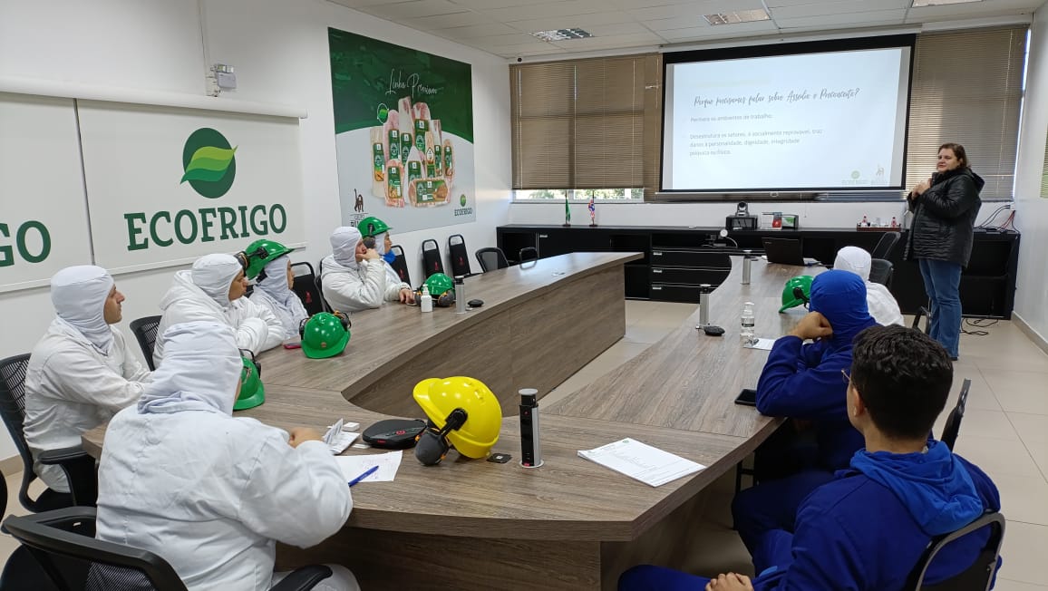 Chapecó, SC – A Comissão Interna de Prevenção de Acidentes (CIPA) da Ecofrigo realizou no dia 29 de julho de 2025 uma capacitação com o tema “Respeito e Inclusão no ambiente de trabalho: combate ao assédio e ao preconceito”. A reunião, ministrada pela Assistente Social da Ecofrigo, faz parte do programa “Eco Inclui”, direcionado a supervisores e líderes, com o objetivo de fortalecer as relações e promover um ambiente mais respeitoso, inclusivo e livre de atitudes discriminatórias.